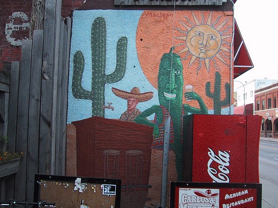 The Capitol Theatre, an important historical landmark was located on this side of Donald a half block further north. Artist Tom Andrich is at left. The artwork was finished in 2002, but the box did not hit the street until March 2003.