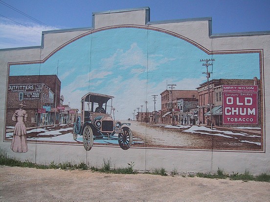This 2002 photo of the beautiful Dan Sawatsky rendering for Transcona BIZ in 1991. The 2010 restoration of this Mural by Tom Andrich may be seen in photo 2.