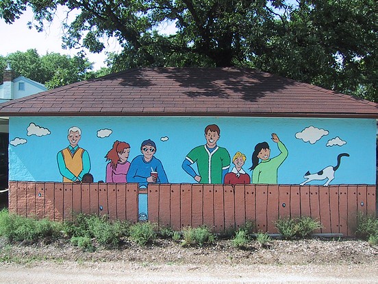 The dimensions of this wall is 60' x 500'. If you were to calculate the painted surface area as 50% of this, it would come in at 15,000 square feet, making it the largest Mural in Manitoba.