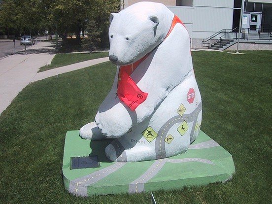 Sapputiwok the Road Safety Bear Sponsor: Manitoba Public Insurance. The Bear was relocated to the West side of the Manitoba Public Insurance Building at 1075 Portage Avenue (photos 1 & 2). In 2011 the Bear was relocated to its permanent location at the NW corner of Maryland & Broadway, inside the schoolyard of Gordon Bell High School (Photo 3).