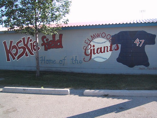 We like this artwork for the dugout at Koskie Field rendered in 2002 by Daniele Maben.
