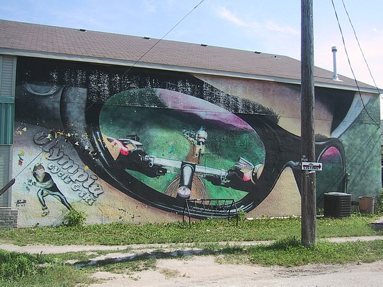 This Mural, from 1998 by Arnell & Co. was sponsored by Norwood Grove BIZ. Weatherworn, it was replaced with signage in 2003.