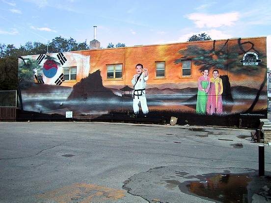 landscape of where he's from; and that's him in the center there, practicing martial arts.