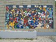 The dimensions of this wall is 60' x 500'. If you were to calculate the painted surface area as 50% of this, it would come in at 15,000 square feet, making it the largest Mural in Manitoba.