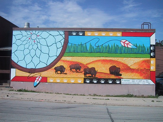 the prairies, the bear claws, and the eagle head at the back wall are all there to represent