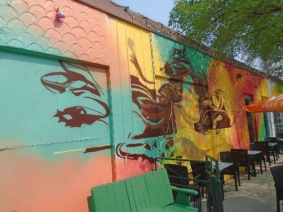 Winnipeg's oldest known Mural has been a city landmark for decades, with an origin that dates back to the 1930's. This photo is of the modern day, current incarnation of the Long Tramp.