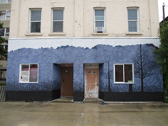 This is the way the wall looked on August 31, 2019. As of late 2020, no further work has happened since at this wall; though we believe the original intent was to extend the scene to the top of the building and to have additional detail.