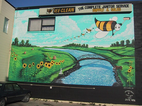 One of the three 'Ol Lonely' Murals Susan Mitchell did in Winnipeg featuring the lonely Maytag repairman. Featured here is the ORIGINAL Lonely Maytag repairman, Jesse White.