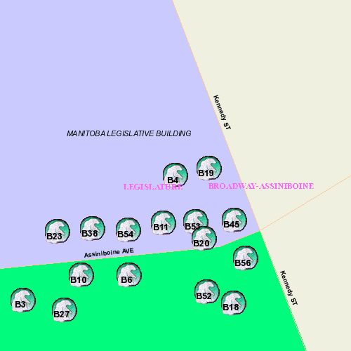 Because We Care Sponsor: Canada Safeway Limited. This Bear is shown (photos 1 & 2) at its original beyond Broadway location: in front of Gas Station Theatre at 445 River; or, more precisely, at the NorthEast corner of River and Osborne. Photo 3 and 4 show the Bear at its now permanent location behind the Legislature along Assiniboine.