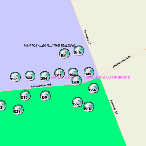 Because We Care Sponsor: Canada Safeway Limited. This Bear is shown (photos 1 & 2) at its original beyond Broadway location: in front of Gas Station Theatre at 445 River; or, more precisely, at the NorthEast corner of River and Osborne. Photo 3 and 4 show the Bear at its now permanent location behind the Legislature along Assiniboine.