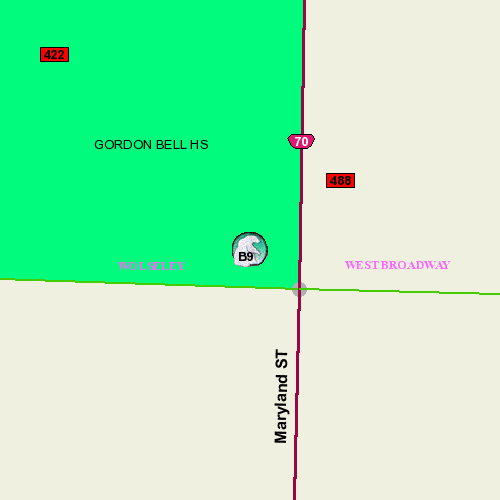 Sapputiwok the Road Safety Bear Sponsor: Manitoba Public Insurance. The Bear was relocated to the West side of the Manitoba Public Insurance Building at 1075 Portage Avenue (photos 1 & 2). In 2011 the Bear was relocated to its permanent location at the NW corner of Maryland & Broadway, inside the schoolyard of Gordon Bell High School (Photo 3).