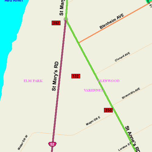 Location: NW corner St. Anne's Rd. and Mager Dr.; East; South & North Face