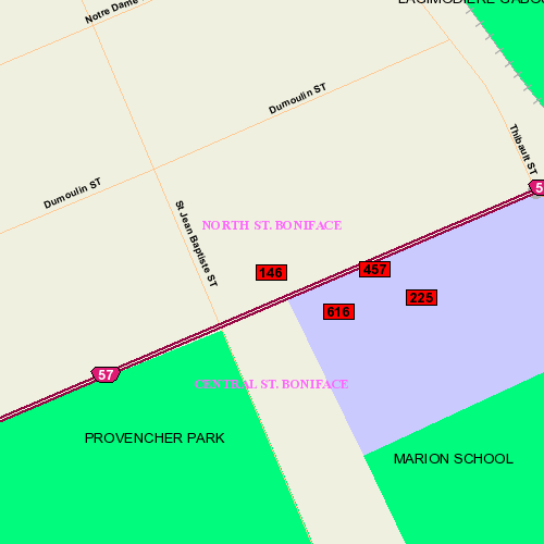 Location: S side bet. St. Jean Baptists and Des Meurons; North Face