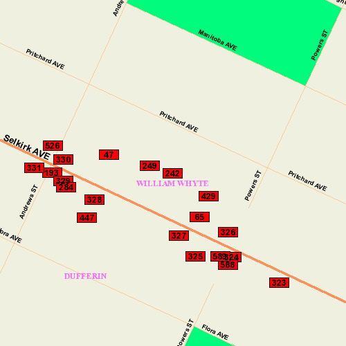 Location: SE corner Selkirk & Powers; rear (South) Face