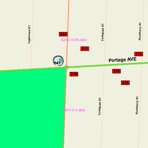 Location: On Ferry, just North of NW corner Portage & Ferry; East Face