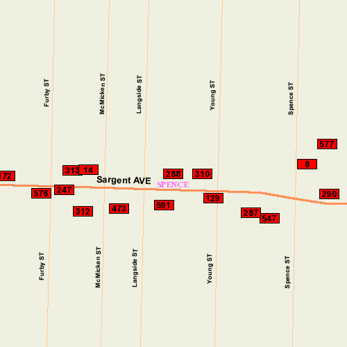 Location: SW corner Sargent & Spence; West Face
