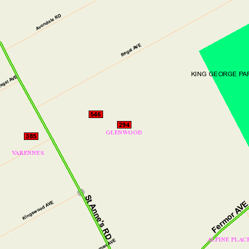Location: SE Corner Regal & St. Anne's Rd; South Face