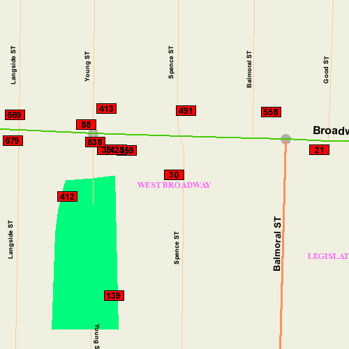 Location: East Side South of Broadway; playground building; access from back lane to Balmoral; North Face