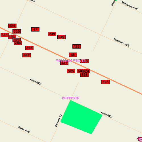 Location: SE corner Selkirk & Powers; rear (South) Face