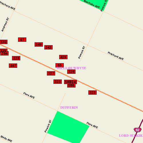 Location: SE corner Selkirk & Powers; rear (South) Face