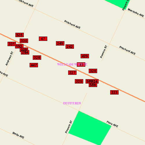 Location: SE corner Selkirk & Powers; rear (South) Face