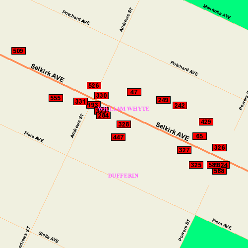 Location: SE corner Selkirk & Andrews; South Face (rear sliding door)