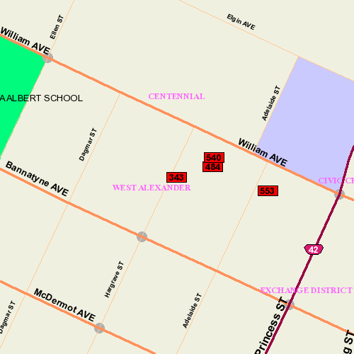 Location: S side bet. Adelaide & Hargrave; West Face (Patio)