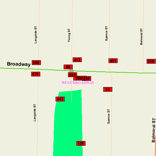 Location: East Side South of Broadway; playground building; access from back lane to Balmoral; North Face