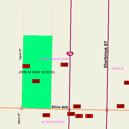 Location: N side bet.Furby & Sherbrook; South (front) and East Face