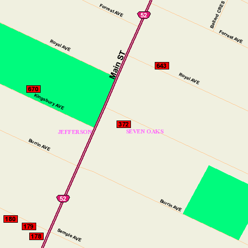 Location: NW corner Main & Kingsbury; South Face along Kingsbury wall