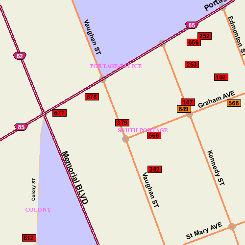 Location: SW corner Portage & Vaughan; window panes on North Face