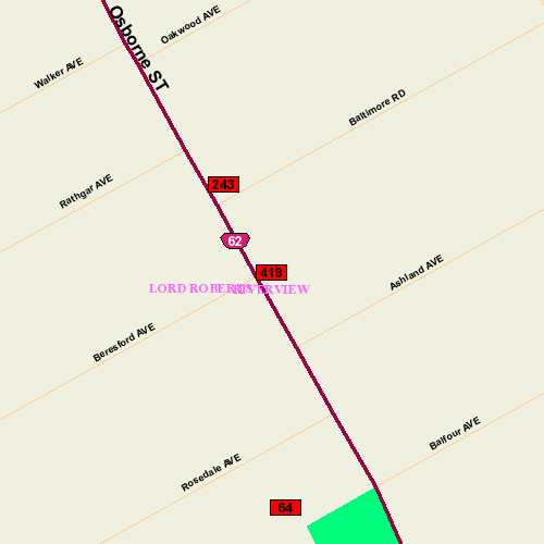 Location: E side at Osborne & Beresford 'T' intersection; West Face