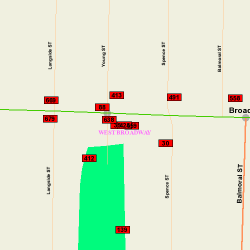 Location: East Side South of Broadway; playground building; access from back lane to Balmoral; North Face