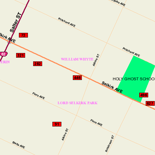 Location: N side Selkirk & Robinson 'T' intersection; East Face