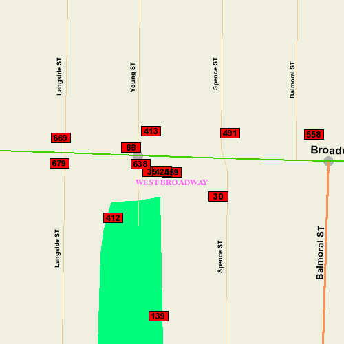 Location: East Side South of Broadway; playground building; access from back lane to Balmoral; North Face