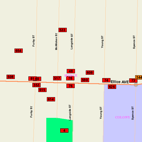 Location: N side bet. Young & Langside; South (Front) Face