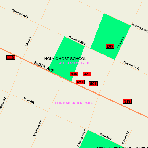 Location: N side Selkirk & Robinson 'T' intersection; East Face