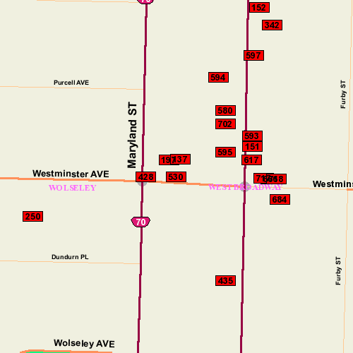 Location: NE corner Maryland & Westminster, West, North & South Face