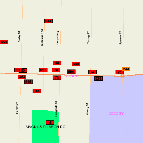 Location: N side bet. Young & Langside; South (Front) Face