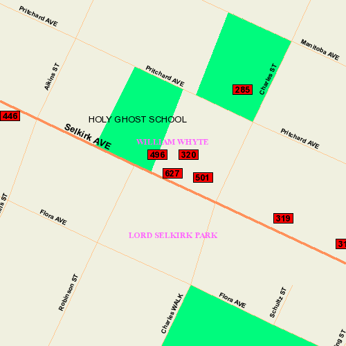 Location: N side Selkirk & Robinson 'T' intersection; East Face