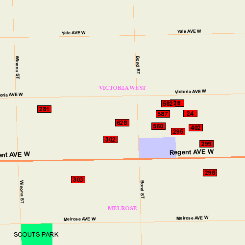 Location: S side bet. Winona & Bond; West Face