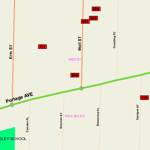 Location: E side bet Portage & Wolever; South Face