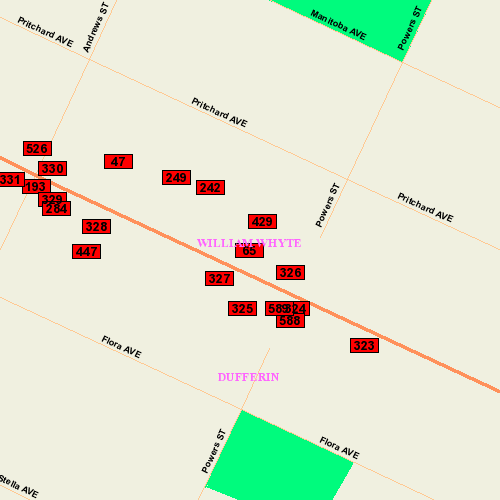 Location: SE corner Selkirk & Powers; rear (South) Face