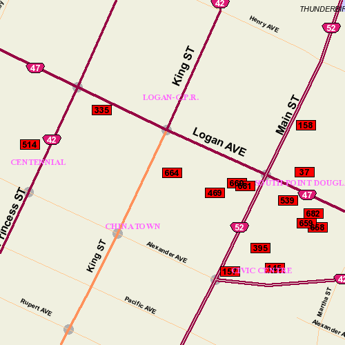 Location: visible from inbound Disraeli bet. Logan and Main; East Face (rear)