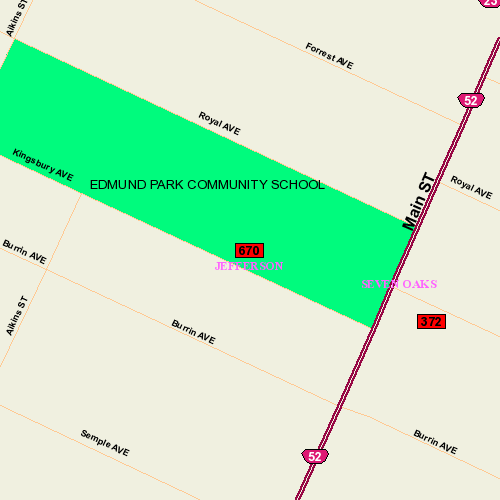 Location: NW corner Main & Kingsbury; South Face along Kingsbury wall