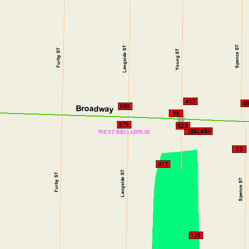 Location: East Side South of Broadway; playground building; access from back lane to Balmoral; North Face