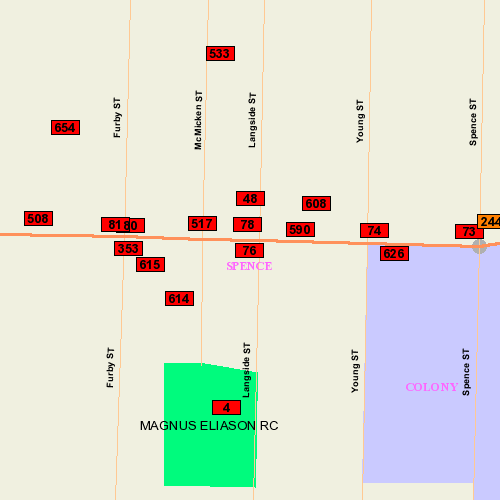 Location: N side bet. Young & Langside; South (Front) Face